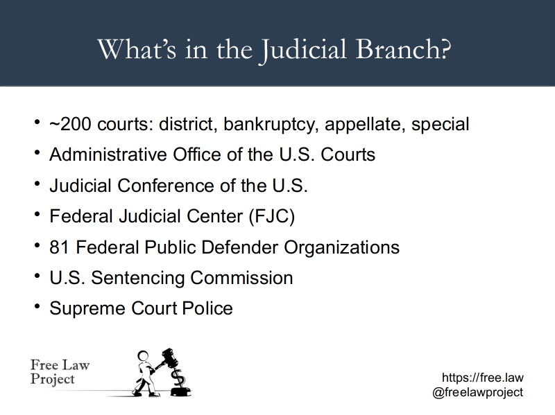 The slides from my presentation are below and here are videos of each of our presentations. The recording of Daniel's presentation about the Legislative Branch starts here, and mine about the Judicial Branch starts here.
