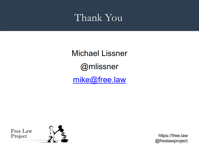 At Free Law Project, we plan to continue working on this issue and will soon be making a decision about how and whether to pursue it legislatively. If you're interested in being a part of this work, we'd love to hear from you.